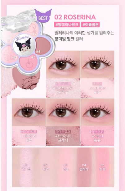 AMUSE Flora Eye Palette (+Acrylic Charm, Seal Sticker) Kuromi #02 Roserina Set